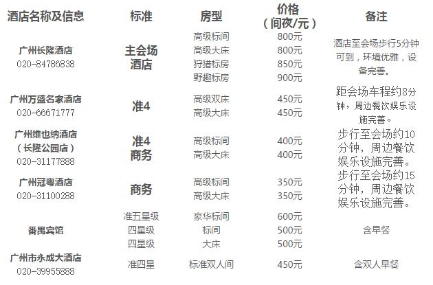 (下列表格內(nèi)所示費(fèi)用均含酒店服務(wù)費(fèi)。臨近開會(huì)日期,酒店價(jià)格可能上調(diào))