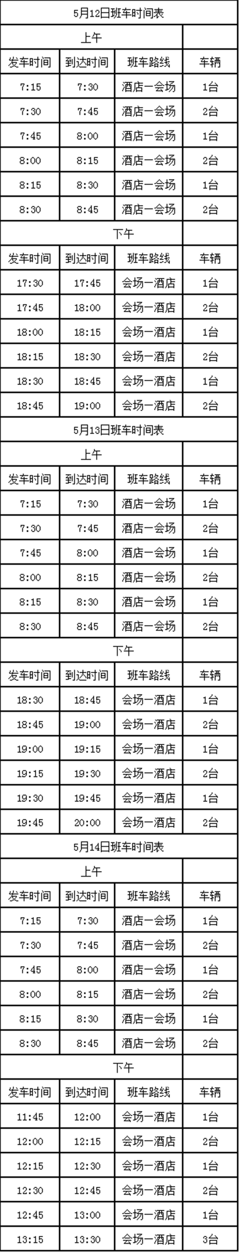 7、班車為酒店與會(huì)場(chǎng)之間往返班車,中途不做停留。