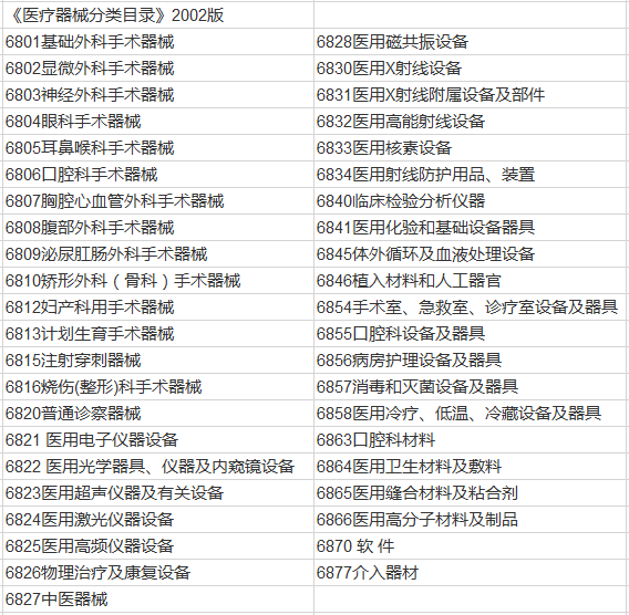 舊版《醫(yī)療器械分類目錄》的43個子目錄