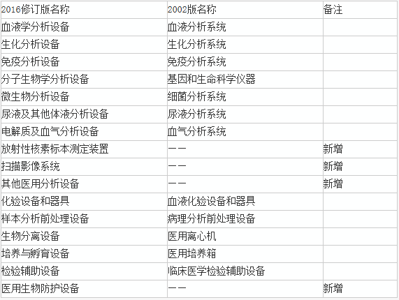 新版臨床檢驗器械子目錄在一級目錄上的變化