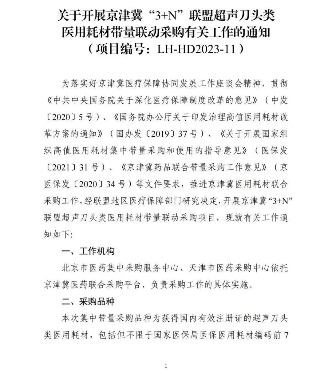 9月18日,北京醫(yī)保局發(fā)布《關于開展京津冀“3+N”聯(lián)盟超聲刀頭類醫(yī)用耗材歷史采購數(shù)據(jù)及采購需求量填報工作的通知》(簡稱《通知》)。