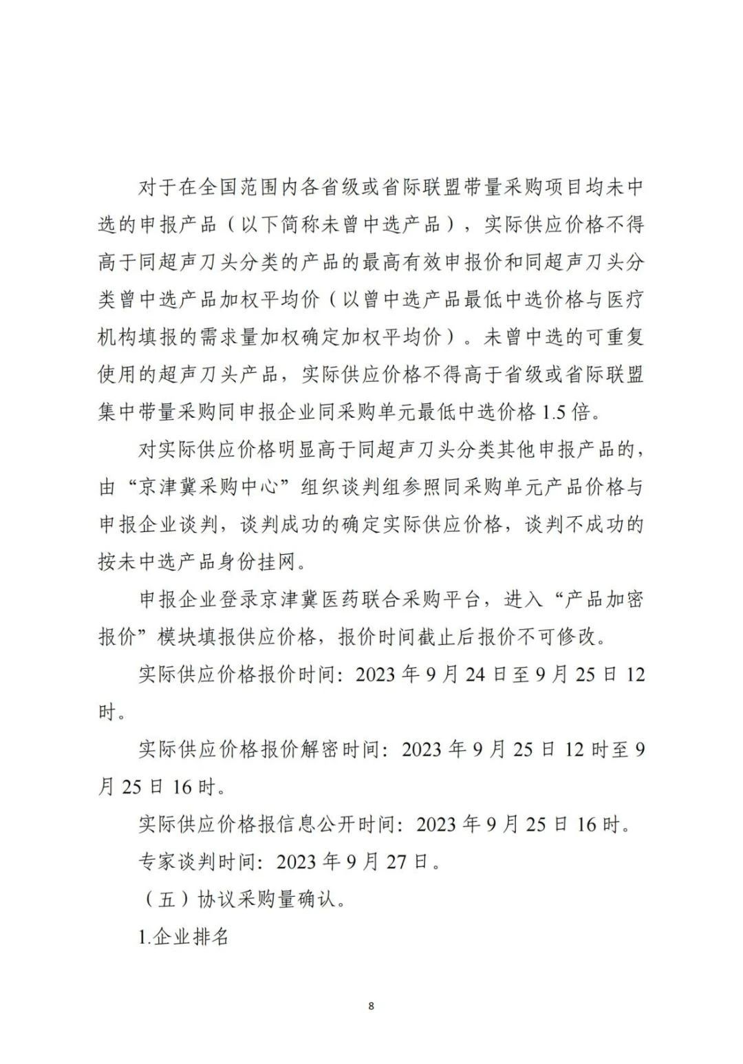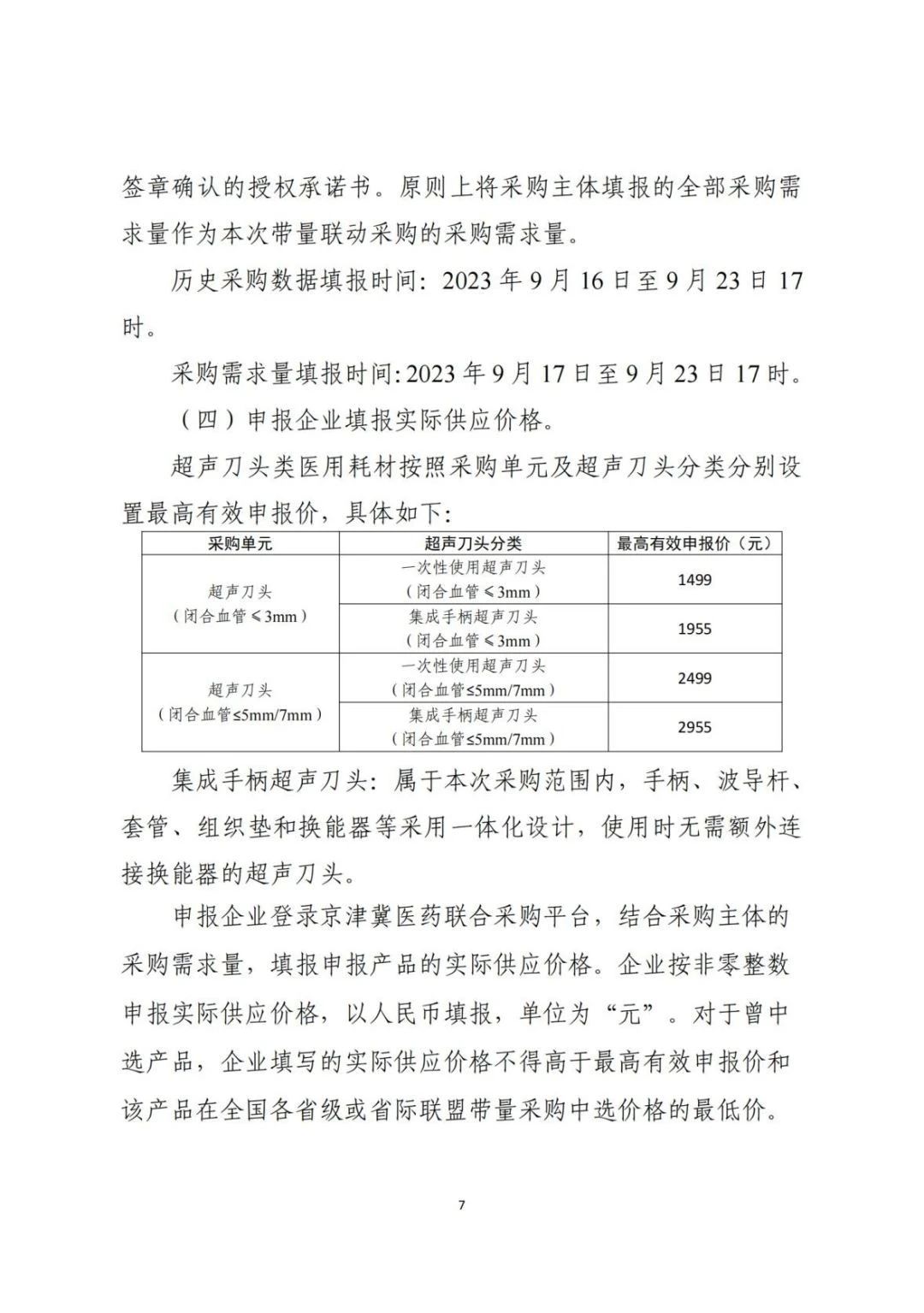9月15日,京津冀醫(yī)藥聯(lián)合采購平臺發(fā)布《關于開展京津冀“3+N”聯(lián)盟超刀頭類醫(yī)用耗材帶量聯(lián)動采購有關工作的通知》,公布了最高有效申報價以及中選與采購需求量分配規(guī)則。