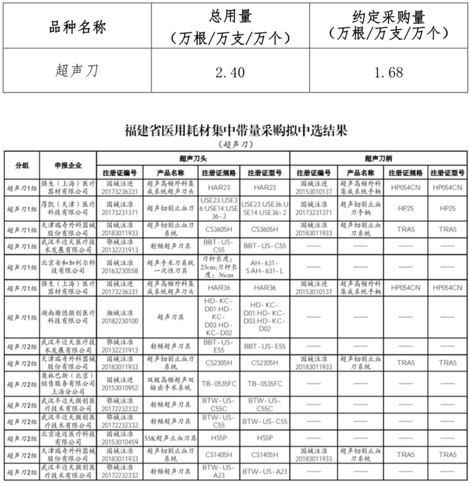 從中選結(jié)果可以看到,超聲刀類耗材擬中選企業(yè)包括強生、奧林巴斯、天津瑞奇、北京速邁以及武漢半邊天等械企。