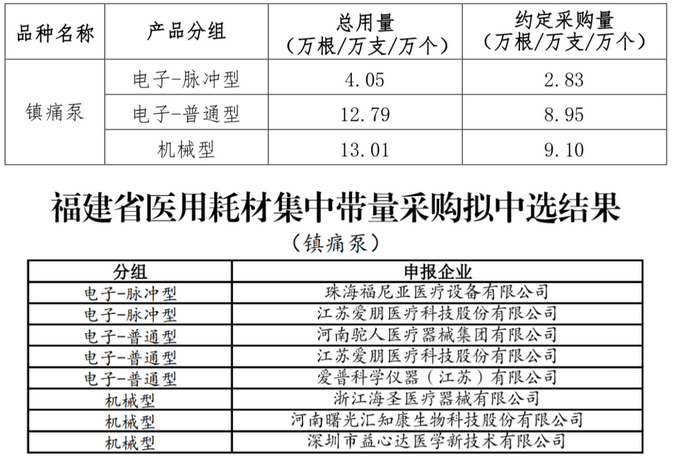 鎮(zhèn)痛泵擬中選企業(yè)包括、江蘇愛朋、河南駝人、珠海福尼亞等械企。