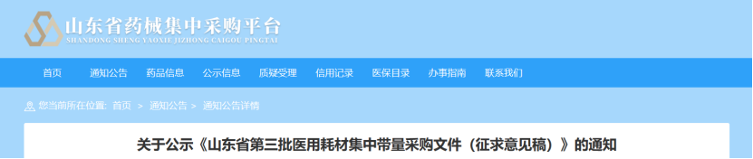 3月8日,山東省藥械集中采購(gòu)平臺(tái)發(fā)布《山東省第三批醫(yī)用耗材集中帶量采購(gòu)文件(征求意見稿)》(以下簡(jiǎn)稱《征求意見稿》)。