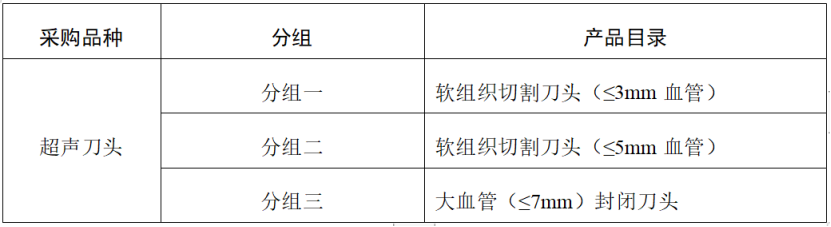 其中,超聲刀頭為國(guó)家醫(yī)保局醫(yī)保醫(yī)用耗材編碼前7位為C140301、C140302和C140304的產(chǎn)品。具體分組如下: