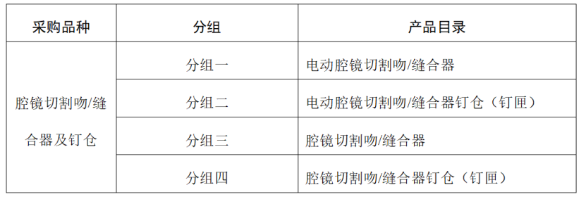 腔鏡切割吻/縫合器及釘倉(cāng)(釘匣)為國(guó)家醫(yī)保局醫(yī)保醫(yī)用耗材編碼前7位為C110102、C110103、C110104和C110105的產(chǎn)品。具體分組如下:
