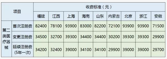 境內(nèi)第二類醫(yī)療器械產(chǎn)品的首次注冊(cè)收費(fèi)71500元、變更注冊(cè)收費(fèi)29900元,延續(xù)注冊(cè)收費(fèi)29700元。