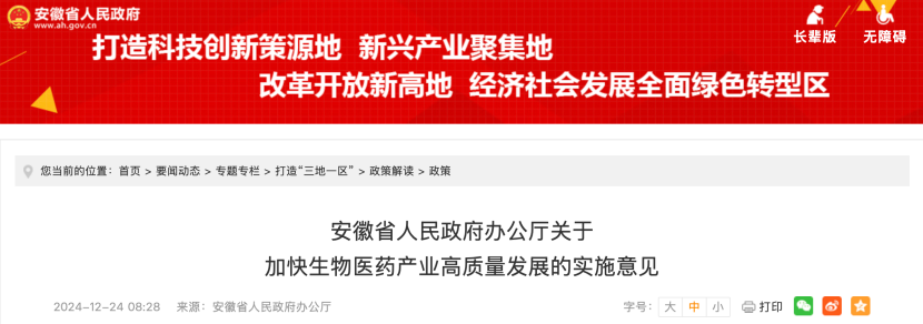 近日,安徽省人民政府辦公廳發(fā)布《安徽省人民政府辦公廳關(guān)于加快生物醫(yī)藥產(chǎn)業(yè)高質(zhì)量發(fā)展的實(shí)施意見》。
