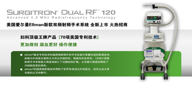 美國愛爾曼全新Ellman Surgitron Dual 120專注于婦科的應用,能夠在所有組織,包括薄壁組織,交融組織或者無張力組織中,像手術刀一樣操作進行無壓力切割,能夠實現操作多樣化、精確化;攜帶方便、免維護。顯著優(yōu)勢:全數字射頻能量調節(jié)更加精準;全球最先進的雙射頻頻率輸出:4.0Mhz/1.7Mhz切割更加微創(chuàng),凝血效果更加強勁;使用多功能操作手柄操作更加方便讓醫(yī)生得心應手。