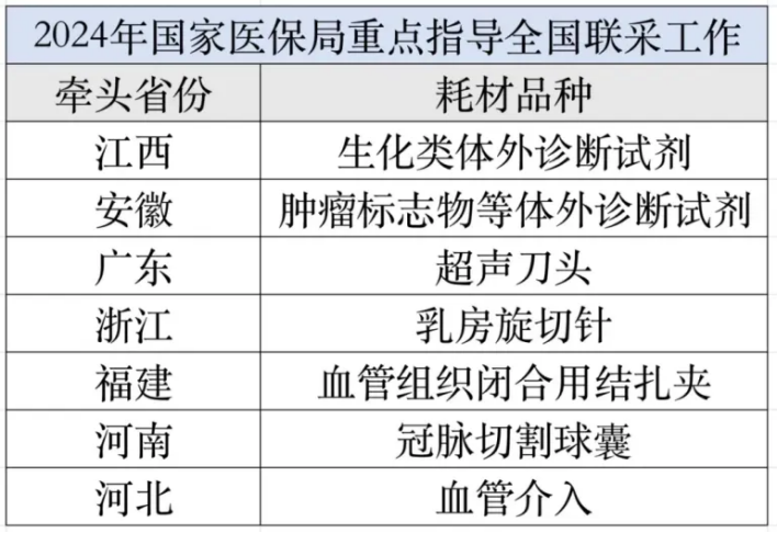 根據(jù)《國家醫(yī)療保障局辦公室關(guān)于加強(qiáng)區(qū)域協(xié)同做好2024年醫(yī)藥集中采購提質(zhì)擴(kuò)面的通知》,省級聯(lián)盟采購要進(jìn)一步加強(qiáng)全國面上協(xié)同,條件具備的提升為全國性聯(lián)盟采購,牽頭省份應(yīng)加強(qiáng)與國家醫(yī)保局溝通協(xié)調(diào),并邀請所有省份參加,形成全國聯(lián)盟集中采購。各省份要抓緊“補(bǔ)缺”,對止血材料、補(bǔ)片、體外診斷試劑等已有多個省份開展的品種,通過帶量價格聯(lián)動等方式納入集采范圍。