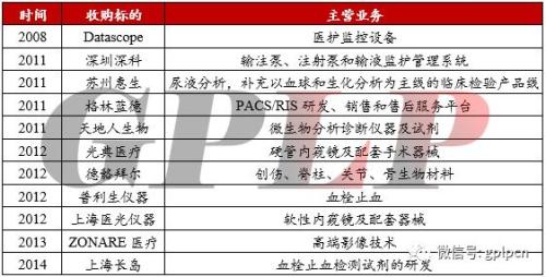其實國內(nèi)的醫(yī)療器械的龍頭公司們也開始醫(yī)療器械產(chǎn)業(yè)鏈的并購,例如樂普醫(yī)療(行情35.70 -0.97%,診股)、魚躍醫(yī)療(行情20.29 -3.38%,診股)和邁瑞醫(yī)療。