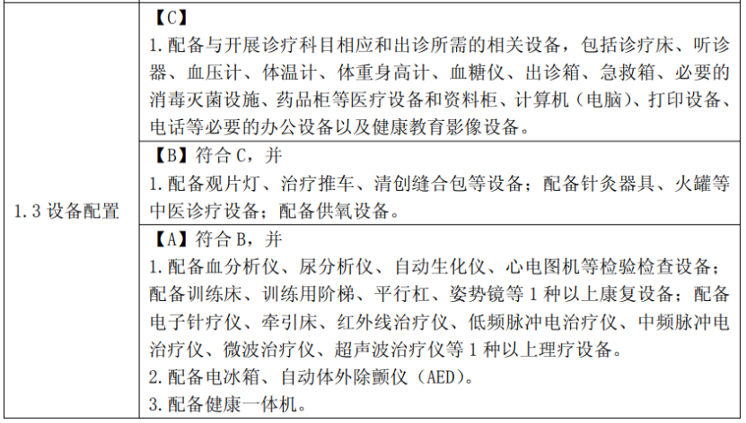 去年7月,國家衛(wèi)健委還印發(fā)了《鄉(xiāng)鎮(zhèn)衛(wèi)生院服務(wù)能力標(biāo)準(zhǔn)(2022版)》《社區(qū)衛(wèi)生服務(wù)中心服務(wù)能力標(biāo)準(zhǔn)(2022版)》和《村衛(wèi)生室服務(wù)能力標(biāo)準(zhǔn)(2022版)》,其中對設(shè)備配置提出要求。