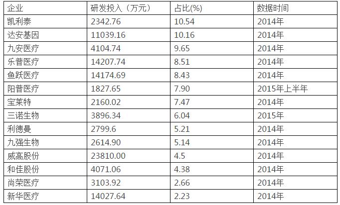 表格:國內(nèi)14家上市醫(yī)械研發(fā)占比
