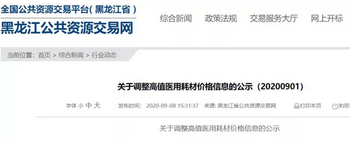 醫(yī)藥網9月11日訊 9月8日,黑龍江公共資源交易網發(fā)布《關于調整高值醫(yī)用耗材價格信息的公示》,公布257種耗材的降價結果。