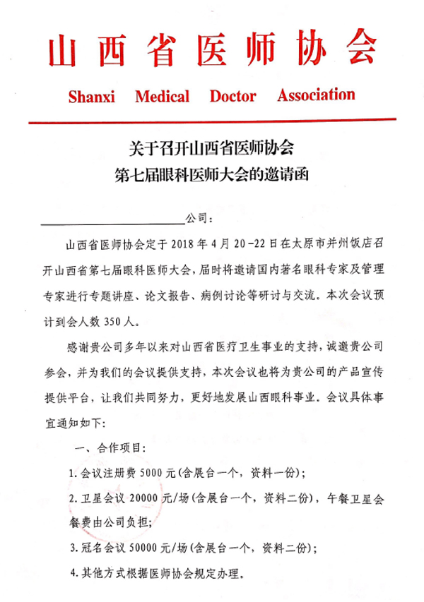 山西省醫(yī)師協(xié)會第七屆眼科醫(yī)師大會邀請函