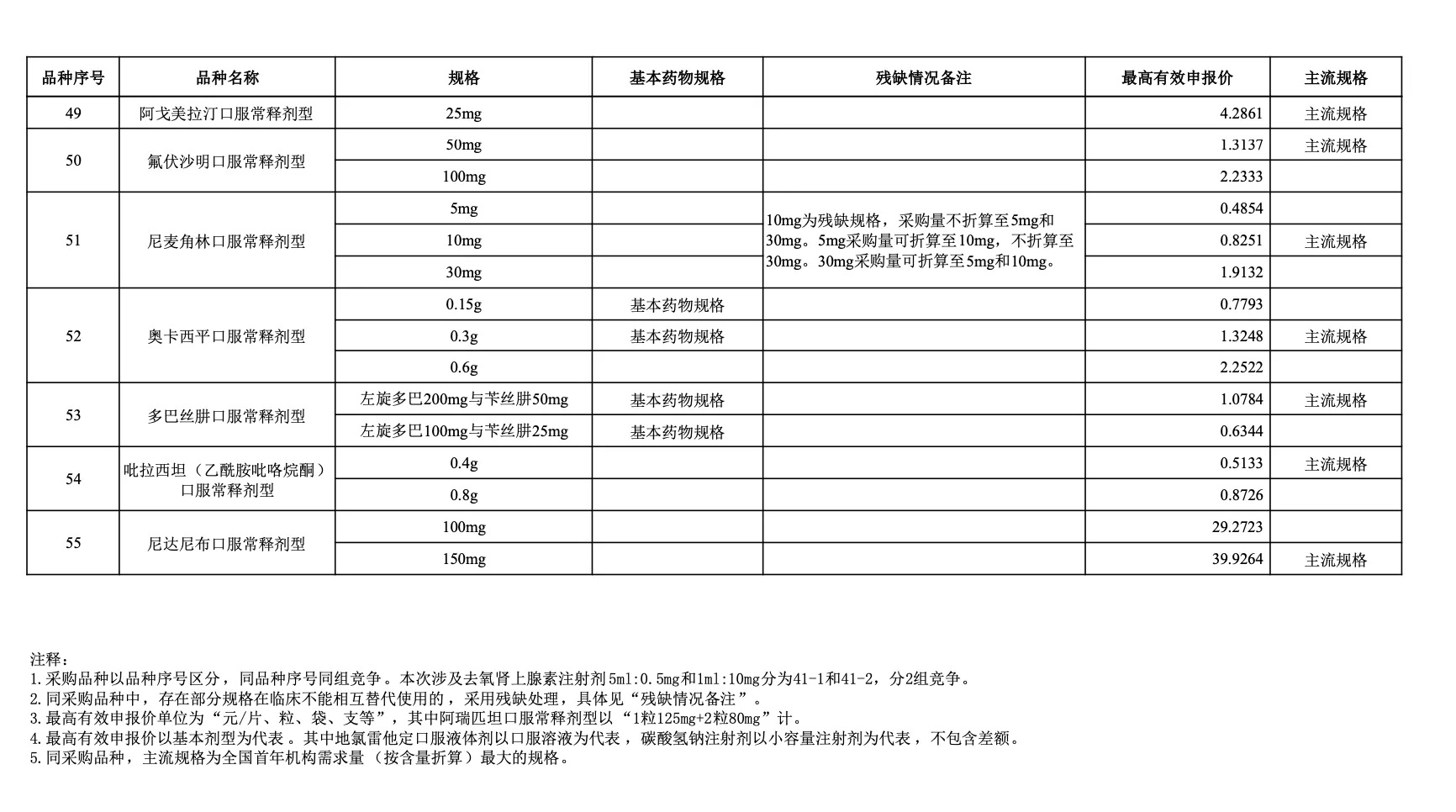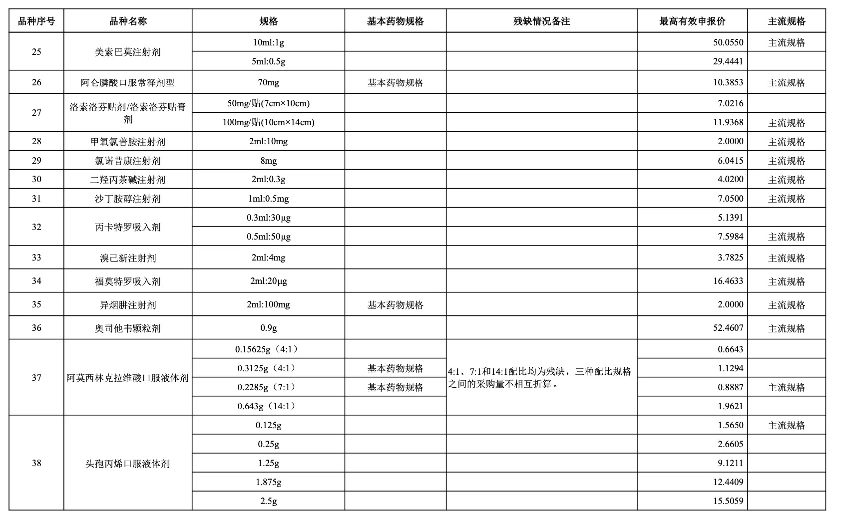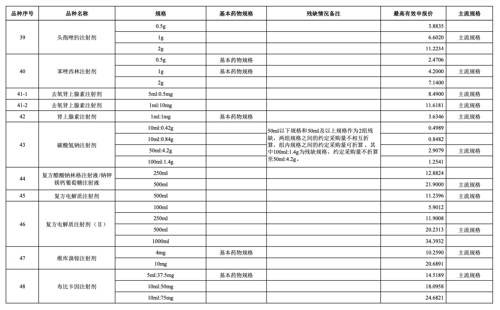 以采購品種范圍內(nèi)同品種主流規(guī)格(即全國首年機(jī)構(gòu)需求量(按含量折算)最大的規(guī)格)作為代表規(guī)格,參照藥品差比價(jià)規(guī)則折算至最小計(jì)量單位后的價(jià)格作為“單位可比價(jià)”。按“單位可比價(jià)”由低到高確定申報(bào)企業(yè)順位。“單位可比價(jià)”最低的為第一順位,次低的為第二順位,依次類推確定其他順位。