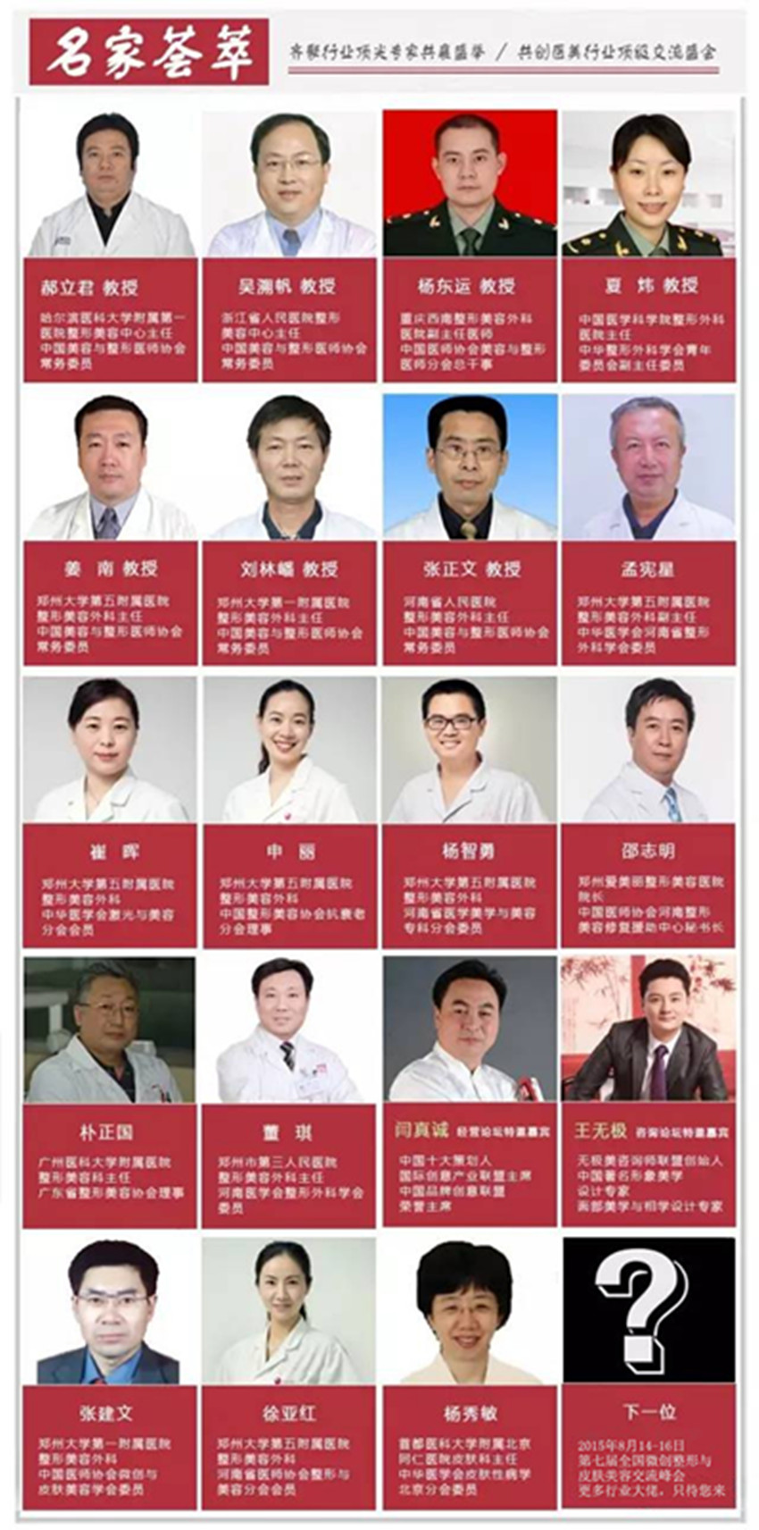 應(yīng)邀出席此次大會(huì)的不僅有眾多國(guó)內(nèi)知名教授,還有來(lái)自國(guó)外的頂級(jí)專家。本次會(huì)議將從不同角度、不同層面展現(xiàn)國(guó)內(nèi)外美容、整形方面的新技術(shù)、新進(jìn)展,同時(shí)會(huì)議還將分別就激光美容、運(yùn)營(yíng)管理、咨詢營(yíng)銷等方面進(jìn)行全面、深入的交流和研討。為醫(yī)美界廣大醫(yī)師和同行提供了良好的學(xué)習(xí)交流和溝通的平臺(tái)。