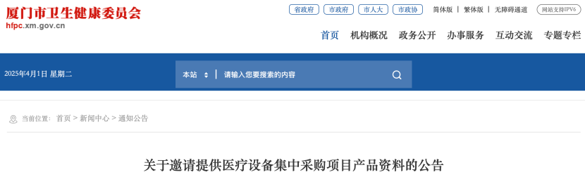 根據(jù)相關(guān)規(guī)定,各需求醫(yī)院已將采購需求調(diào)研公告在其官網(wǎng)掛網(wǎng)公示。并邀請有意向參加醫(yī)療設(shè)備集中采購的供應(yīng)商按照各需求醫(yī)院要求提供相應(yīng)材料。