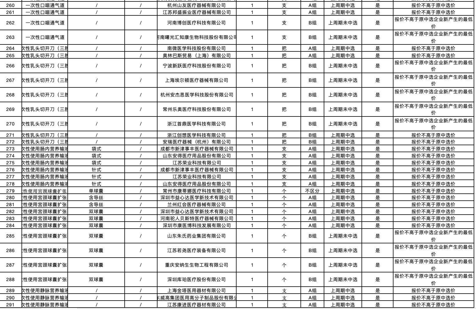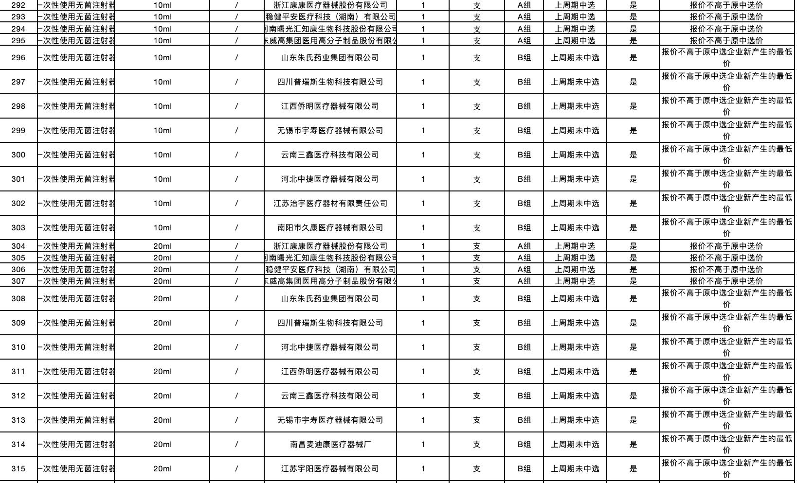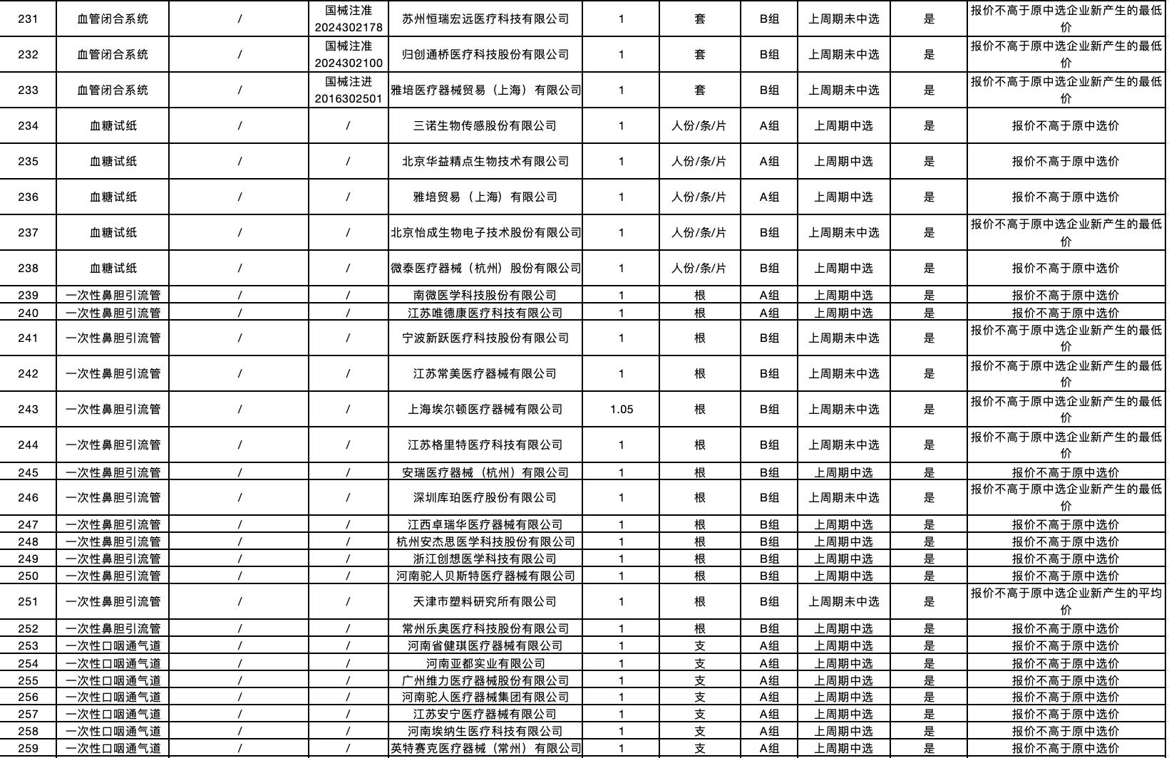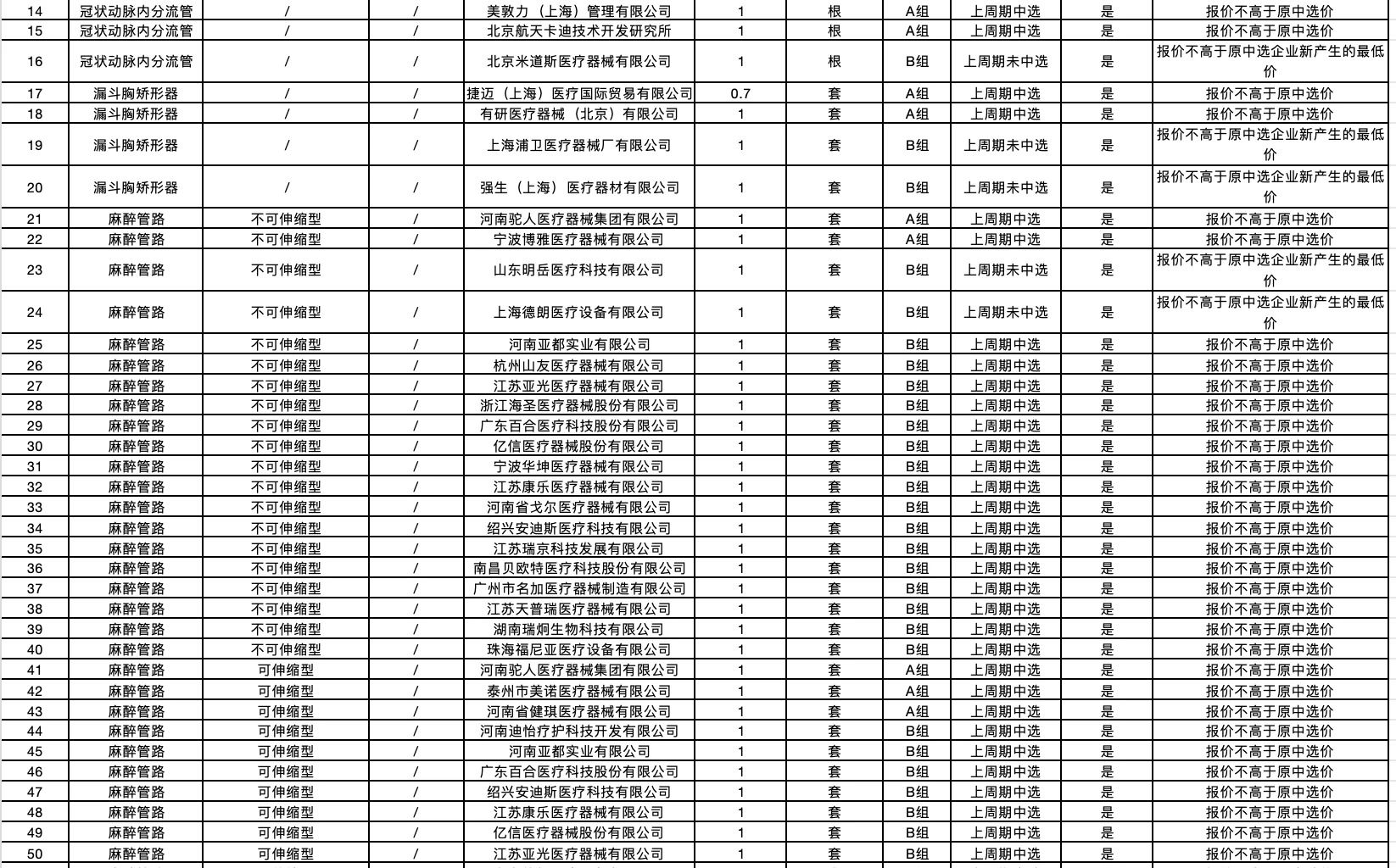按照采購文件關(guān)于報(bào)價(jià)的規(guī)定,24個(gè)采購品種分47個(gè)產(chǎn)品分類進(jìn)行報(bào)價(jià),擬中選情況如下: