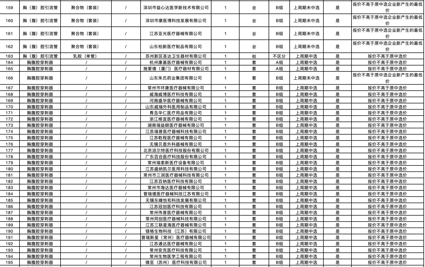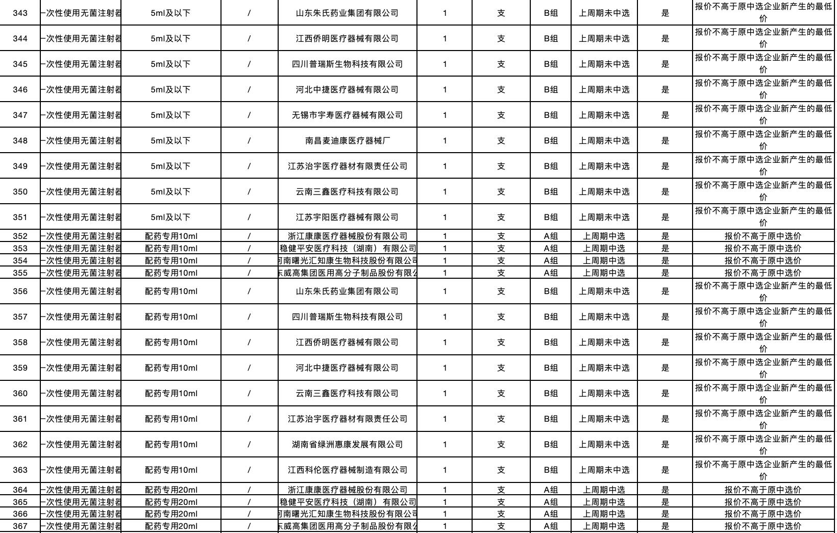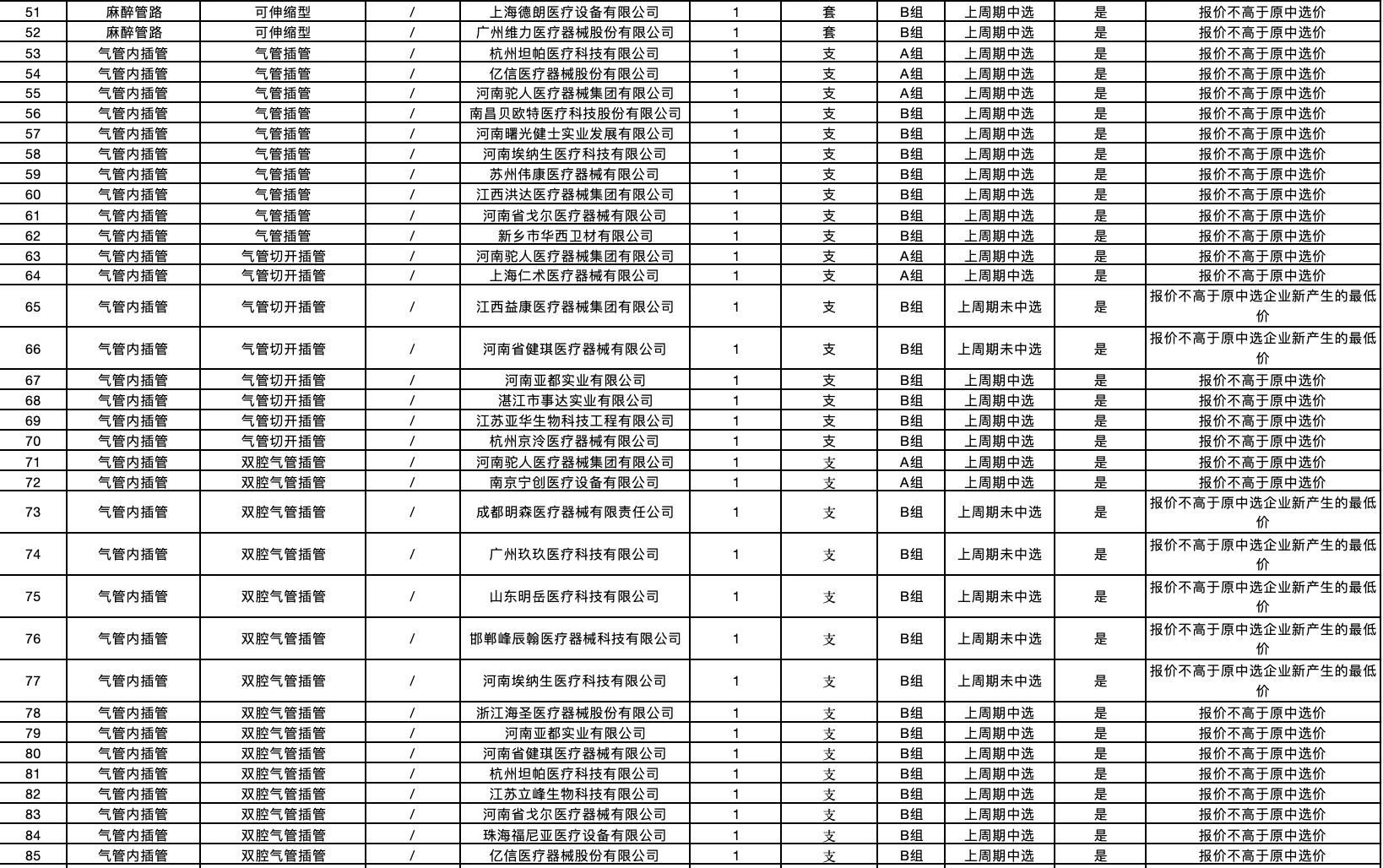 按照采購文件關(guān)于報(bào)價(jià)的規(guī)定,24個(gè)采購品種分47個(gè)產(chǎn)品分類進(jìn)行報(bào)價(jià),擬中選情況如下: