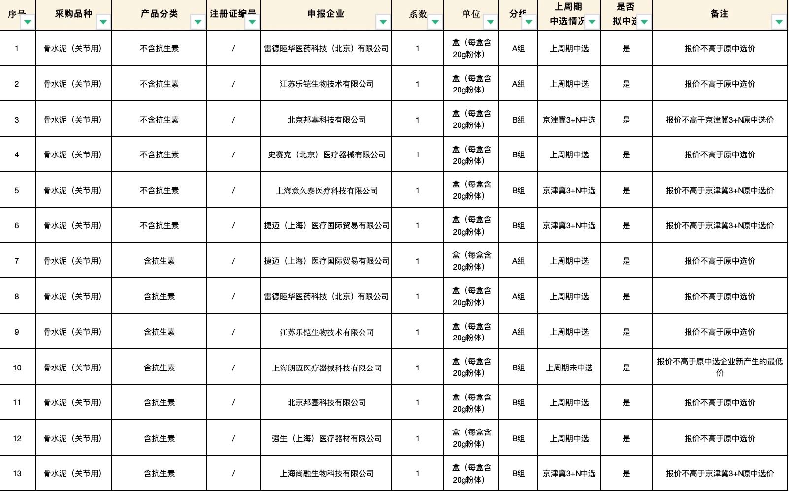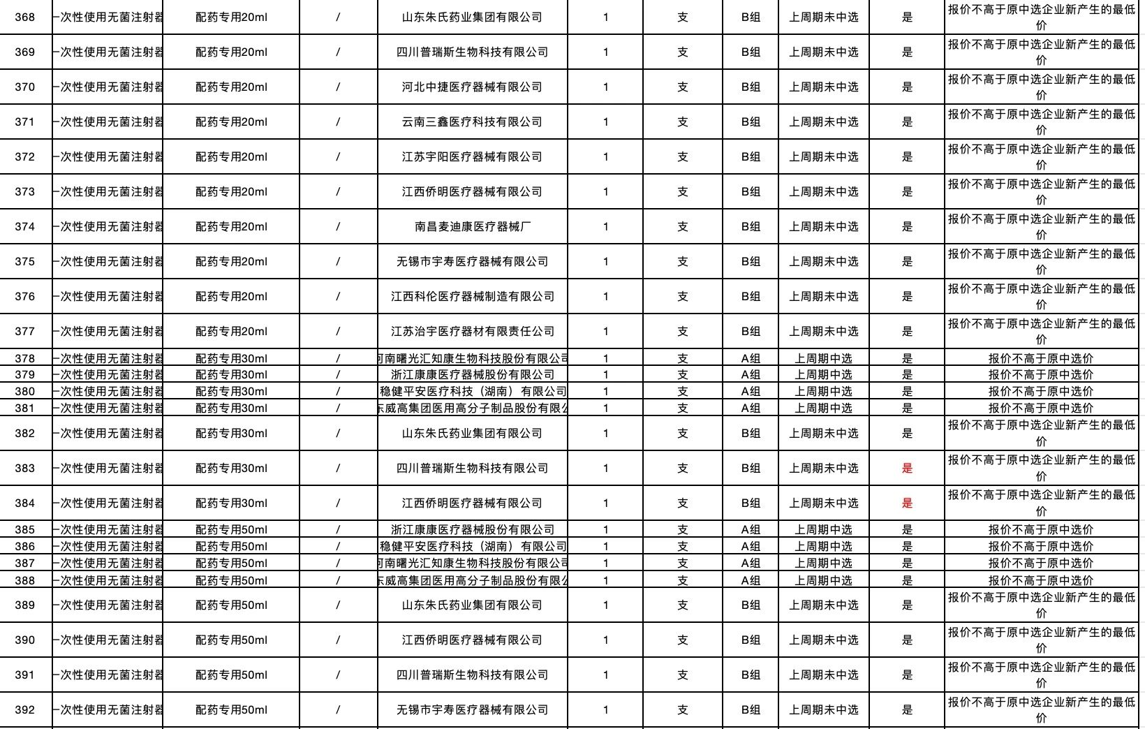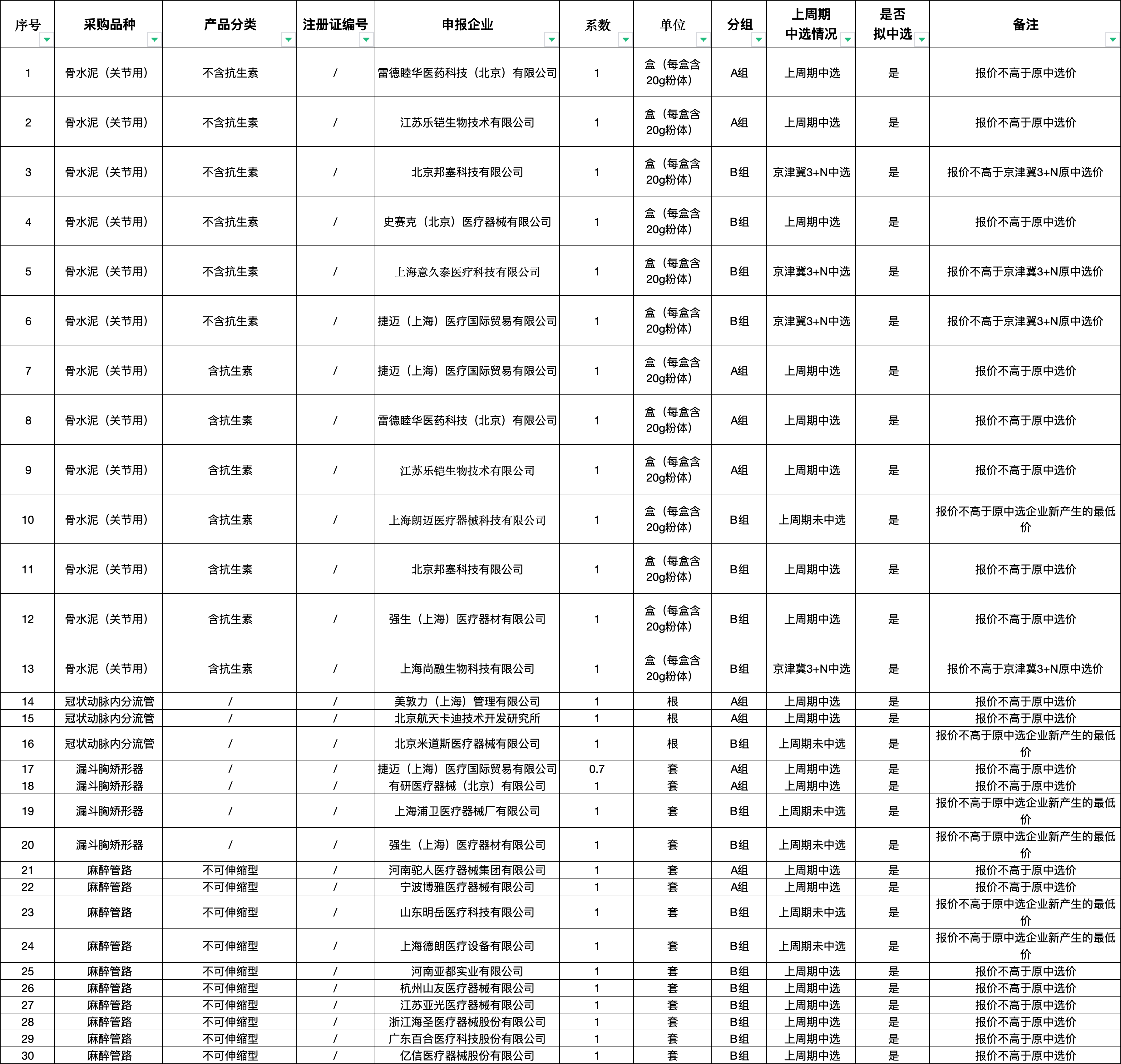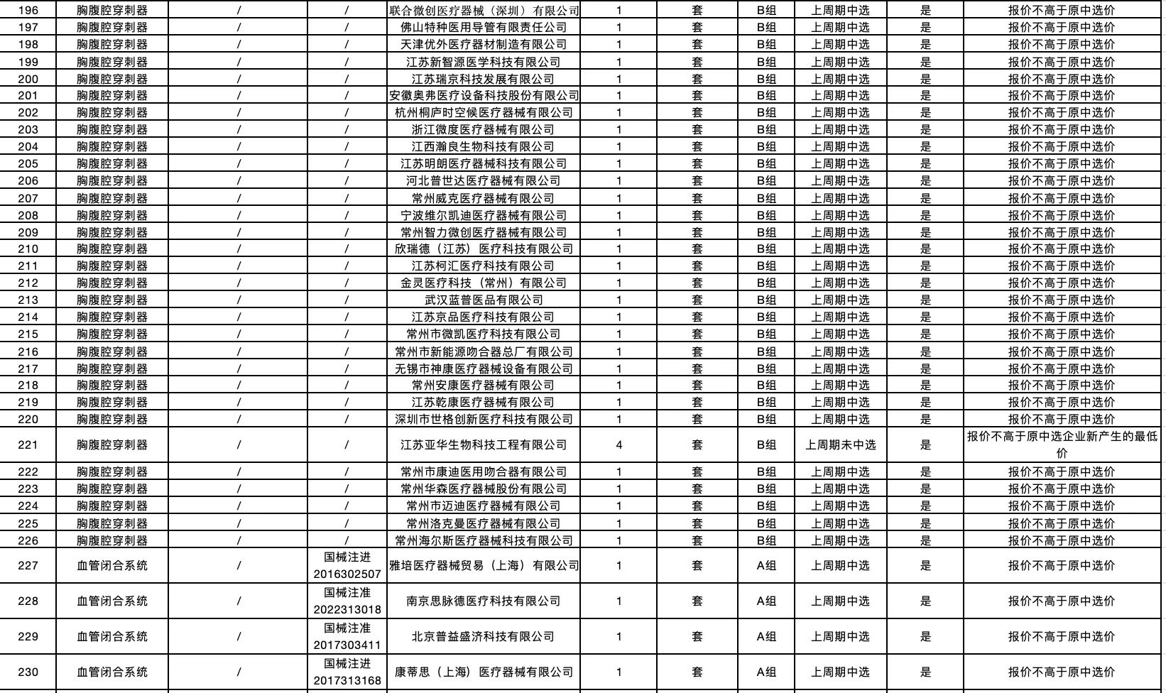 按照采購文件關(guān)于報(bào)價(jià)的規(guī)定,24個(gè)采購品種分47個(gè)產(chǎn)品分類進(jìn)行報(bào)價(jià),擬中選情況如下: