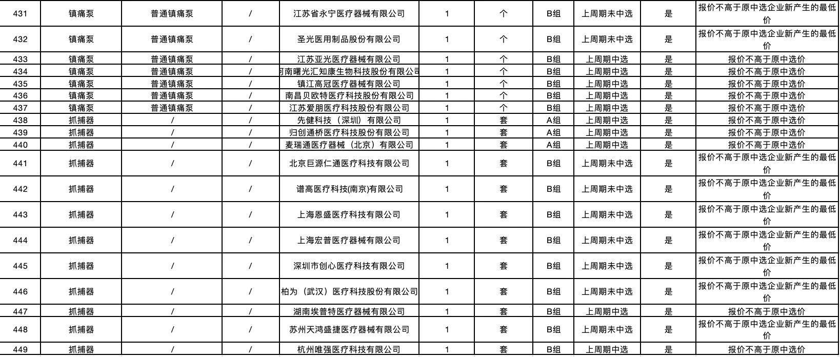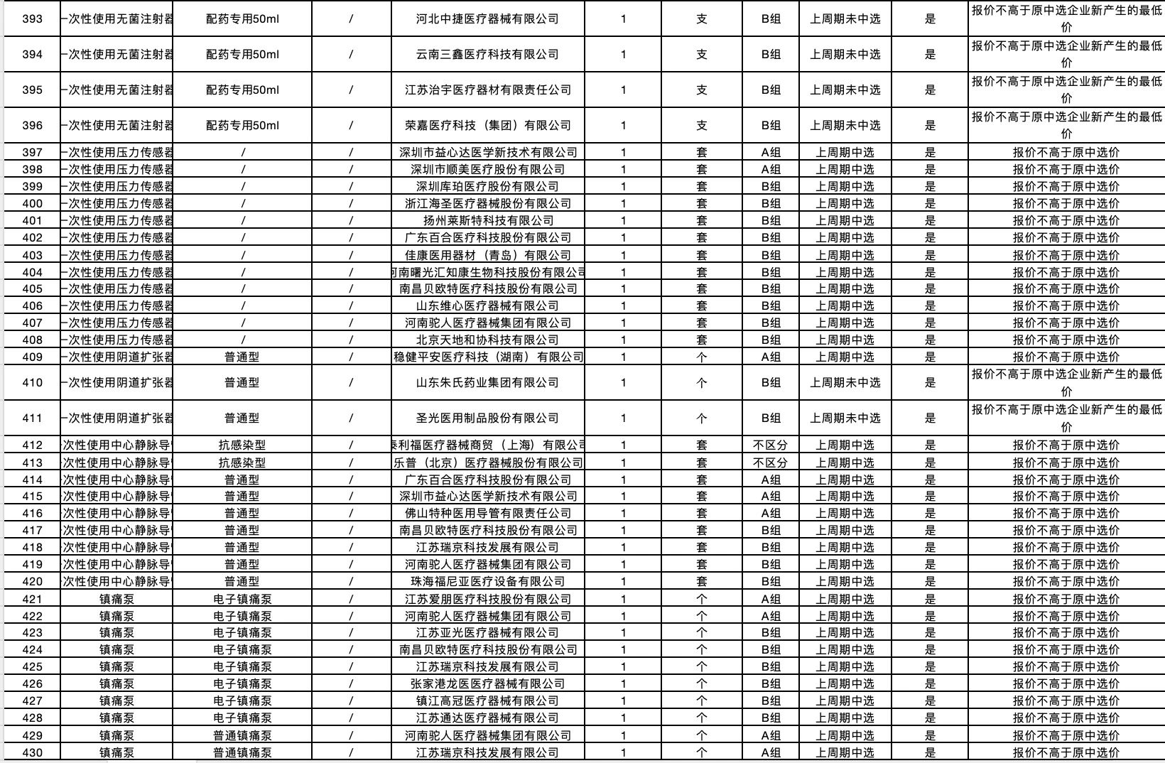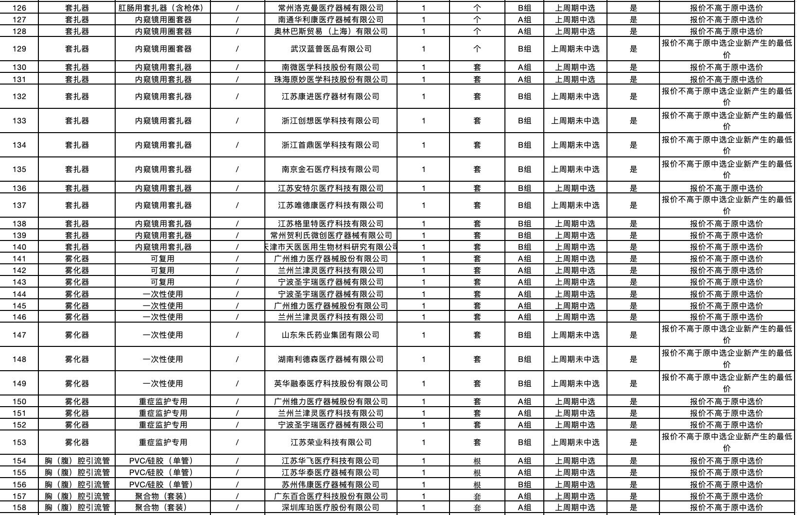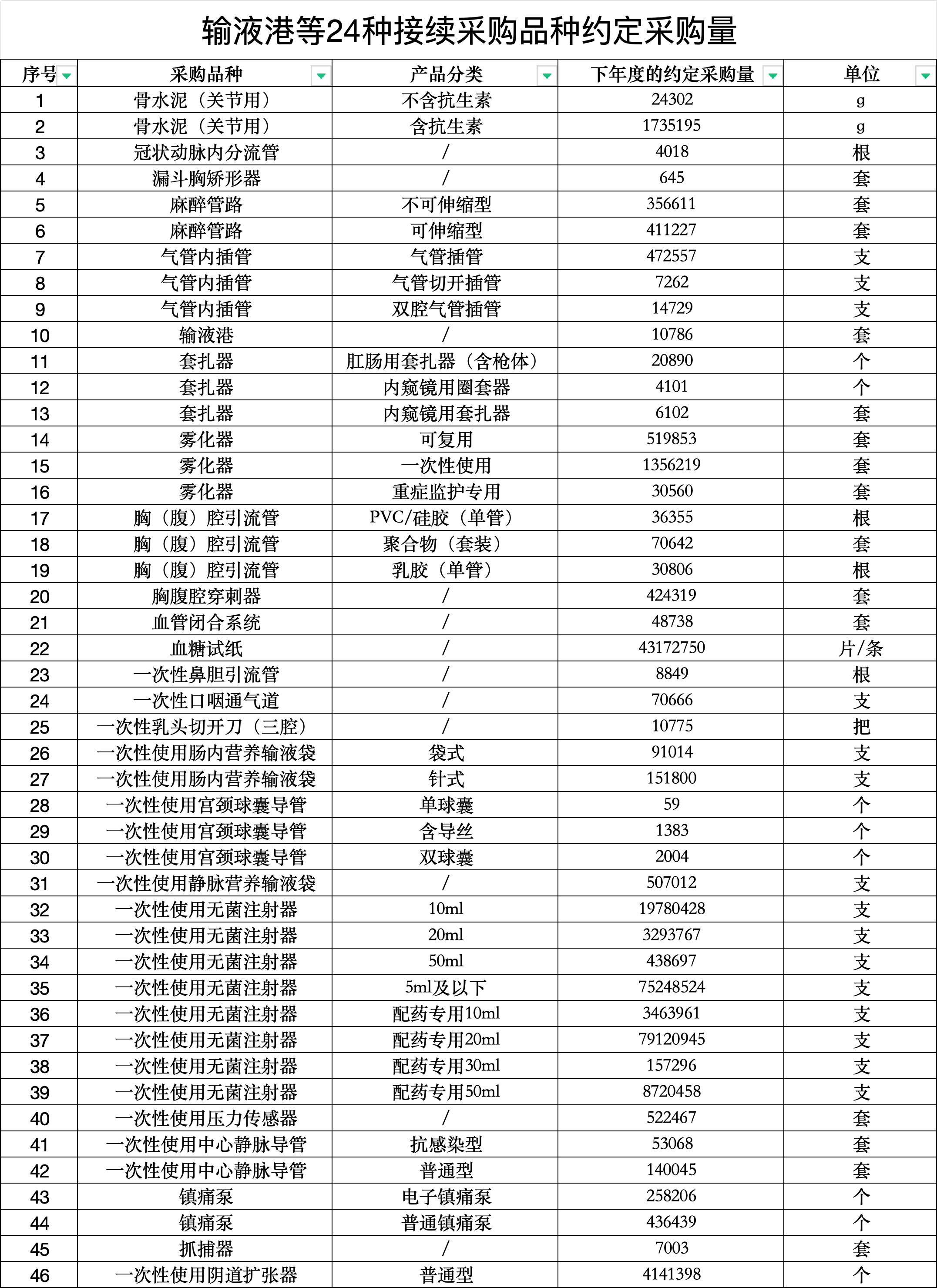 附:輸液港等24種接續(xù)采購醫(yī)用耗材擬中選結(jié)果: