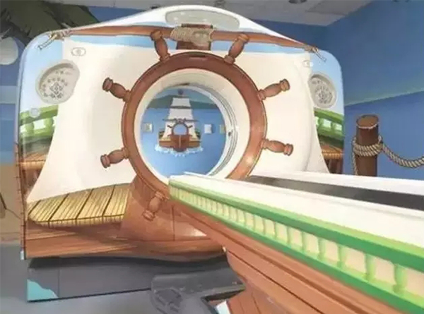 這些創(chuàng)意設(shè)計(jì),發(fā)達(dá)國(guó)家比我們走得前一些。下圖為GE公司和美國(guó)曼哈頓某醫(yī)院共同設(shè)計(jì)的一款兒童核磁共振器,外觀墻壁粉刷都用了海洋的元素。該設(shè)備投入使用后,甚至很多17到21歲的病人也要求使用這款機(jī)器進(jìn)行檢查。