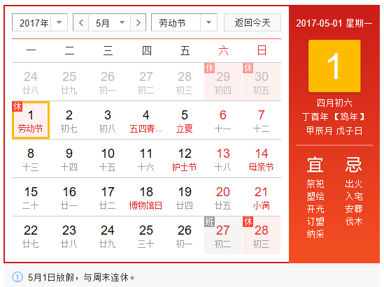 2017年北京華康普美科技有限公司,“五一”假期為:4月29日(星期六)至5月1日(星期一)共放假3天,5月2日(星期二)正常上班。