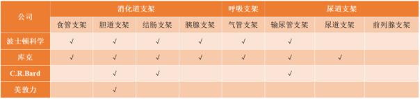 而國(guó)內(nèi)在介入微創(chuàng)器械領(lǐng)域的一些龍頭企業(yè)如微創(chuàng)醫(yī)療、樂(lè)普醫(yī)療、先健科技等,其產(chǎn)品多聚焦在心血管介入,在非血管介入支架方面并無(wú)產(chǎn)品布局。