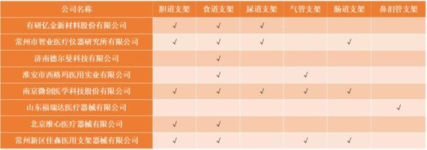 根據(jù)CFDA的數(shù)據(jù)來(lái)看,國(guó)產(chǎn)非血管支架有產(chǎn)品獲批的公司有以下幾家: