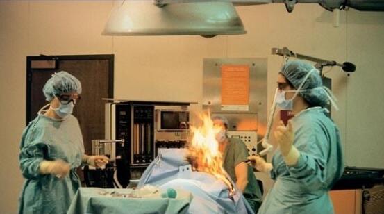 預(yù)防環(huán)境火警:避免在有易燃易爆和揮發(fā)性氣體、高氧環(huán)境環(huán)境中使用電刀(尤其是胸部或頭部手術(shù)),在氣道部位使用時(shí)應(yīng)暫時(shí)移開(kāi)氧氣。(下圖來(lái)自網(wǎng)絡(luò))