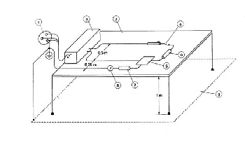試驗(yàn)1——依次對(duì)帶有如圖104所示的電極電纜和電極的高頻手術(shù)設(shè)備的每一個(gè)輸出進(jìn)行試驗(yàn)。兩電纜間隔為0.5m,置于離接地導(dǎo)電平面上方1m的絕緣表面上。輸出端帶200Ω負(fù)載,高頻手術(shù)設(shè)備每一個(gè)工作模式以最大輸出設(shè)定運(yùn)行,測(cè)量從中性電極經(jīng)200Ω無(wú)感電阻流向地的高頻漏電流。