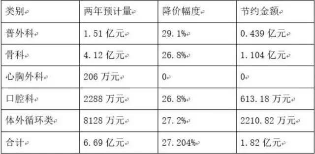 記者現(xiàn)場翻看目錄對比發(fā)現(xiàn),骨科創(chuàng)傷類:下肢組合式外固定支架,泰州平均報價7694.75元,目錄兩年計劃量4308個,計劃采購金額3314萬元,目錄降價率27.84% ,折算為降價前采購額4593萬元,兩年將節(jié)約1278萬元。