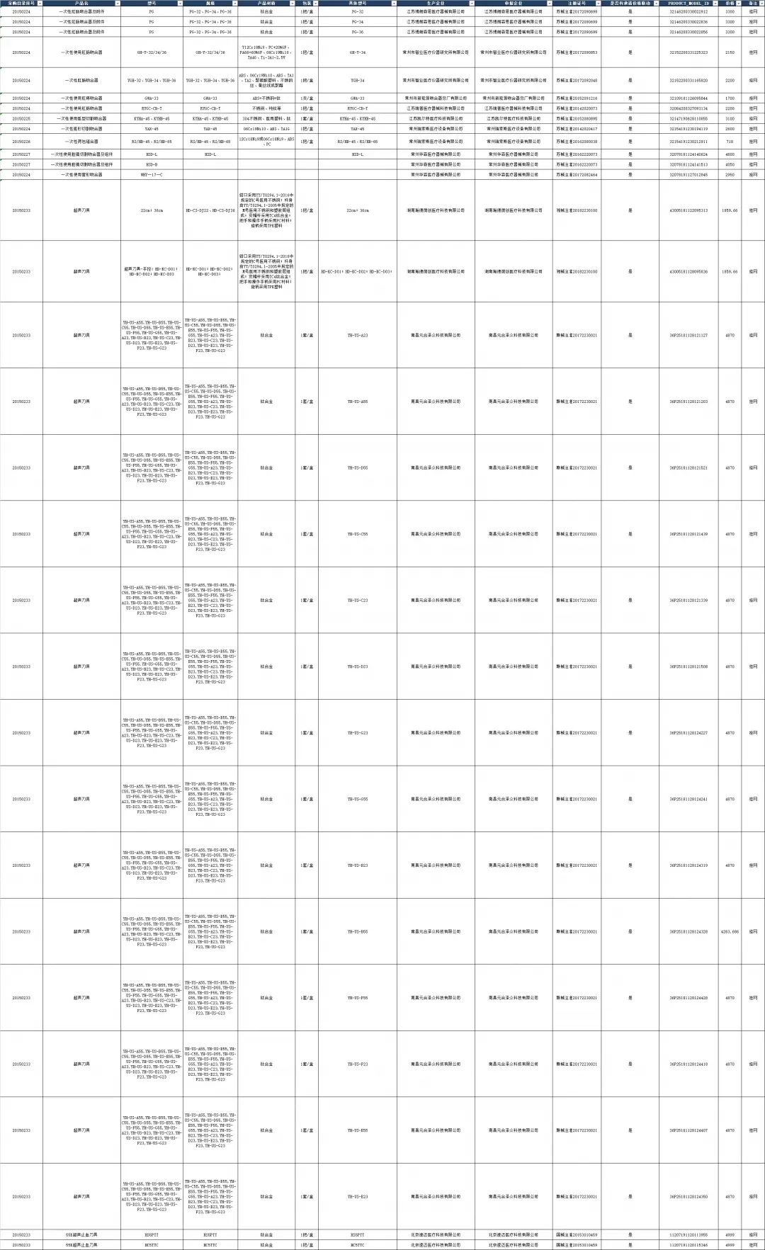 從公布的表格中可以看出,山東省第二批高值耗材集中采購掛網(wǎng)價格聯(lián)動的產(chǎn)品共有290個,產(chǎn)品種類包括一次性醫(yī)用耗材及附件、血管介入類耗材、非血管介入類耗材、超聲刀具等40種,涉及奧林巴斯等26家生產(chǎn)企業(yè)。