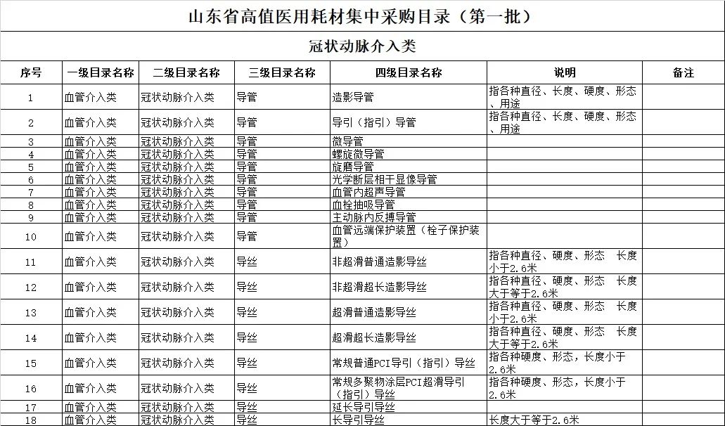 值得注意的是,除了發(fā)布第二批高值醫(yī)用耗材集中采購掛網(wǎng)產(chǎn)品之外,山東省政府采購中心還于18日公布了《山東省高值醫(yī)用耗材集中采購目錄》。