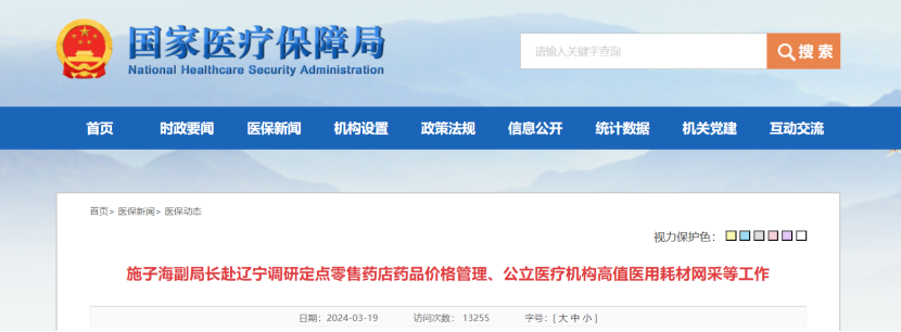 近日,國家醫(yī)保局黨組成員、副局長施子海帶隊(duì)赴遼寧調(diào)研定點(diǎn)零售藥店藥品價格管理、公立醫(yī)療機(jī)構(gòu)高值醫(yī)用耗材網(wǎng)采等工作,實(shí)地調(diào)研定點(diǎn)零售藥店和醫(yī)療機(jī)構(gòu),聽取定點(diǎn)零售藥店、連鎖公司和醫(yī)療機(jī)構(gòu)相關(guān)負(fù)責(zé)同志和代表的意見建議。
