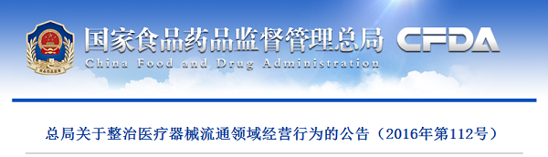 總局關(guān)于整治醫(yī)療器械流通領(lǐng)域經(jīng)營(yíng)行為的公告(2016年第112號(hào))