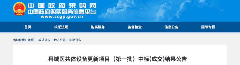 近日,中國(guó)政府采購(gòu)網(wǎng)公布新疆衛(wèi)健委縣域醫(yī)共體設(shè)備更新項(xiàng)目第一批、第二批中標(biāo)結(jié)果。