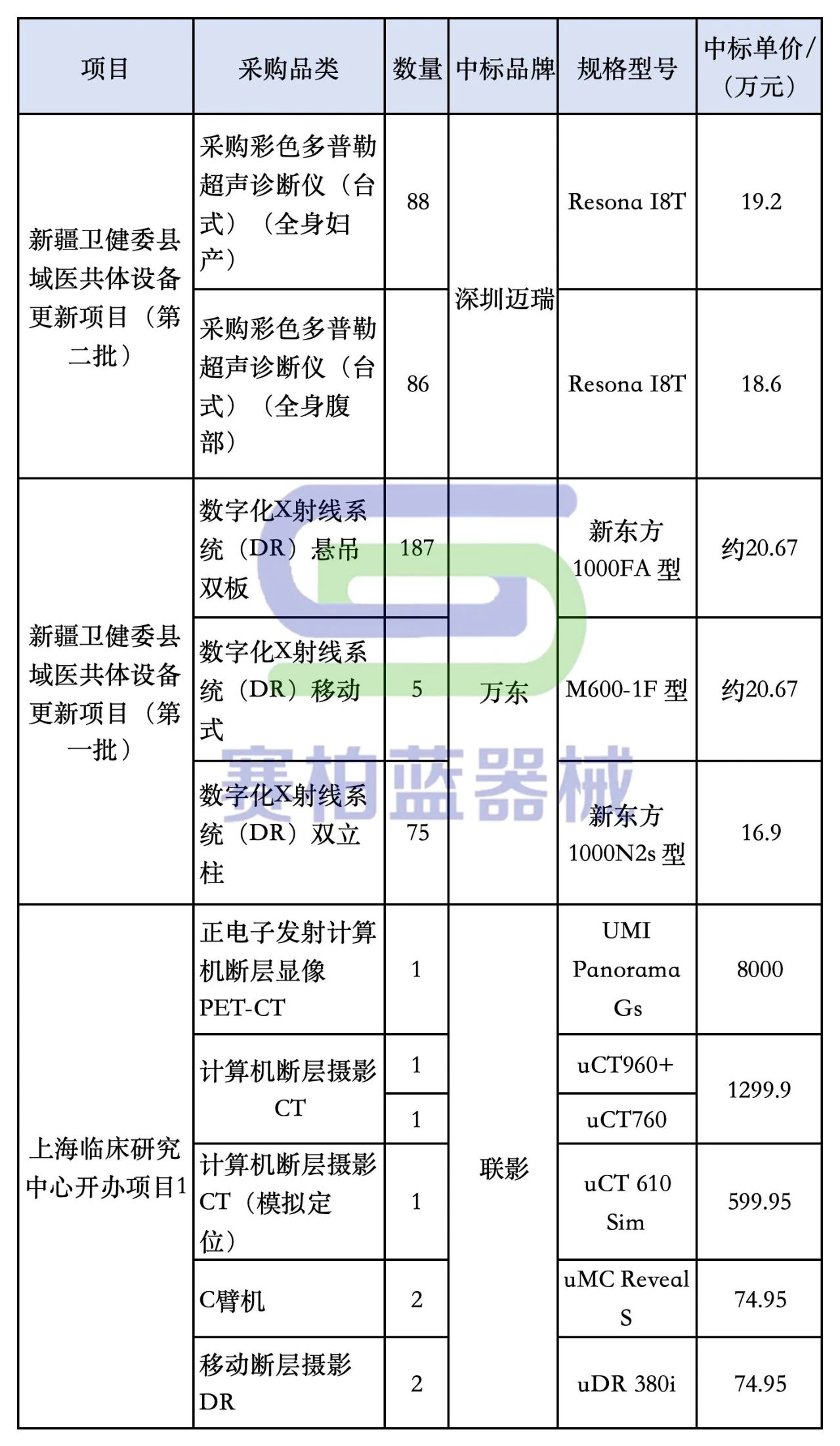 聯(lián)影醫(yī)療一舉拿下了全部訂單,總中標(biāo)金額超1億元。