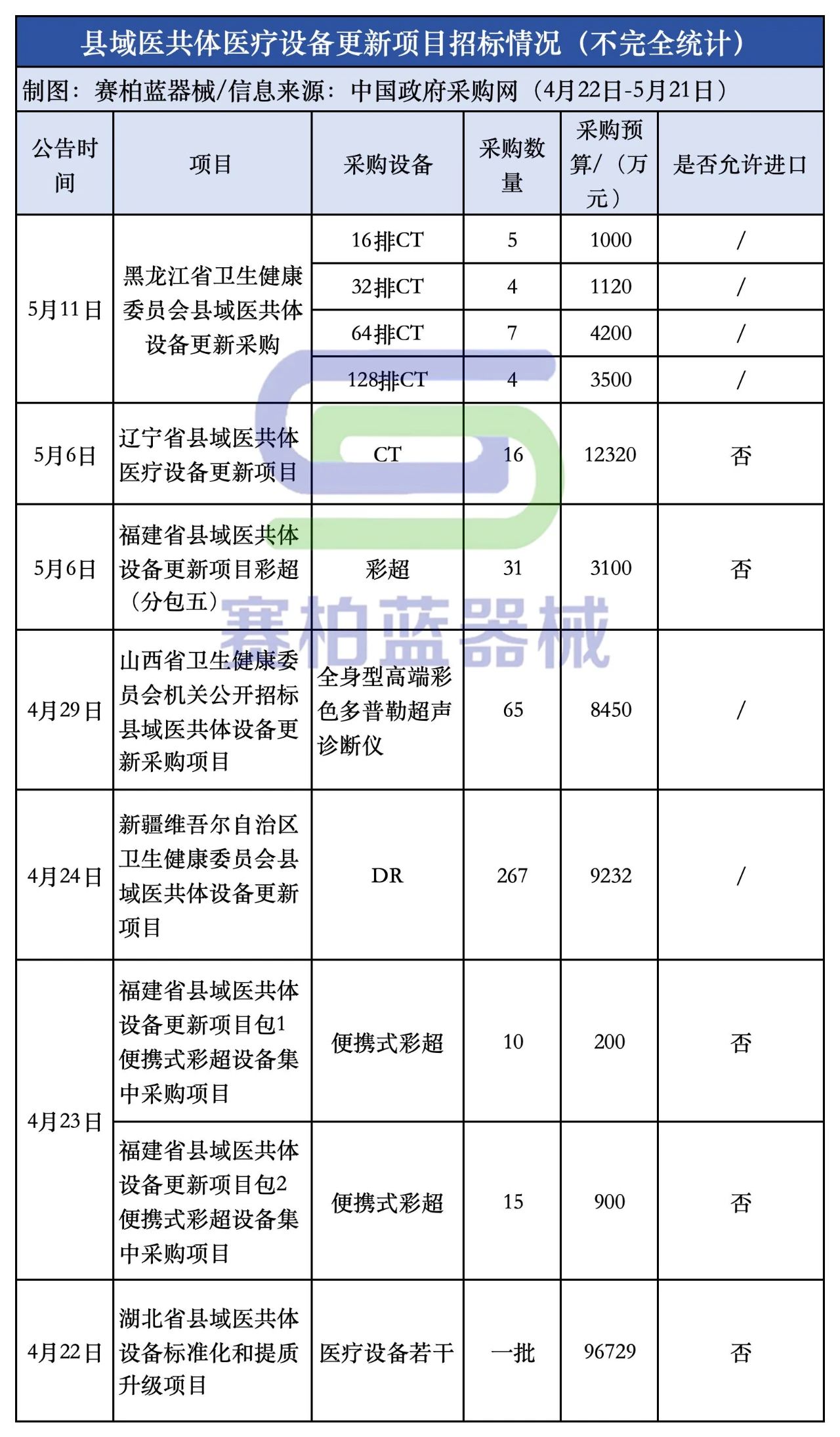 2025年將是醫(yī)療設(shè)備市場(chǎng)的重要爆發(fā)期。據(jù)賽柏藍(lán)器械梳理,近一個(gè)月內(nèi),黑龍江、遼寧、福建、新疆、山西、湖北等多地開(kāi)展縣域醫(yī)共體采購(gòu)項(xiàng)目招標(biāo),招標(biāo)預(yù)算超14億元。