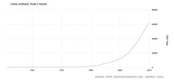 中國(guó)平均年薪,1950-2015。單位:人民幣