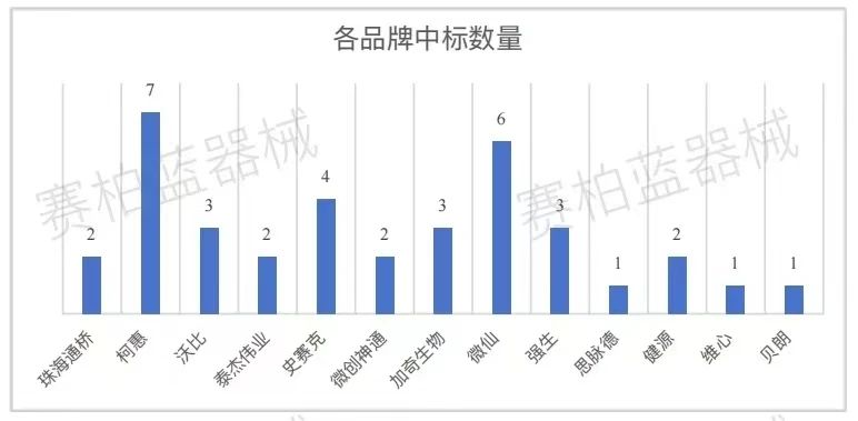 據(jù)賽柏藍(lán)器械梳理,本次集采最低價(jià)出自珠海通橋(3244元),最高價(jià)出自強(qiáng)生(6179元);在37個(gè)中選結(jié)果中,國(guó)產(chǎn)品牌占比為43%,國(guó)產(chǎn)品牌中標(biāo)最多者為沃比醫(yī)療和加奇生物(各3個(gè)),進(jìn)口品牌中標(biāo)最多者為柯惠(7個(gè))。具體如下: