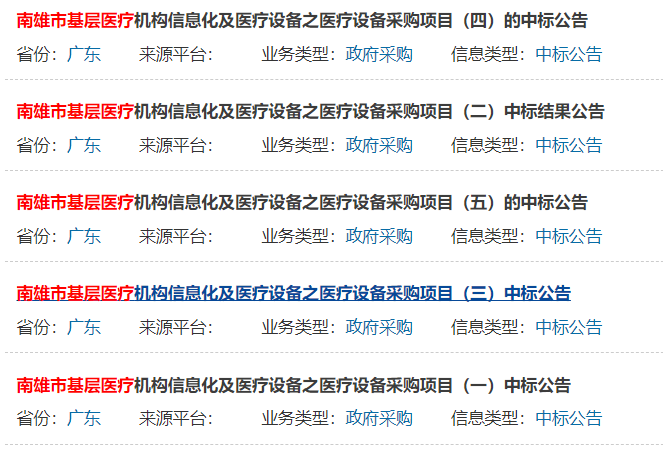 據(jù)中國(guó)政府采購(gòu)網(wǎng)了解,廣東省南雄市衛(wèi)生健康局發(fā)布了一則招標(biāo)公告,總預(yù)算近4000萬(wàn)為南雄市基層醫(yī)療機(jī)構(gòu)采購(gòu)一批醫(yī)療設(shè)備。