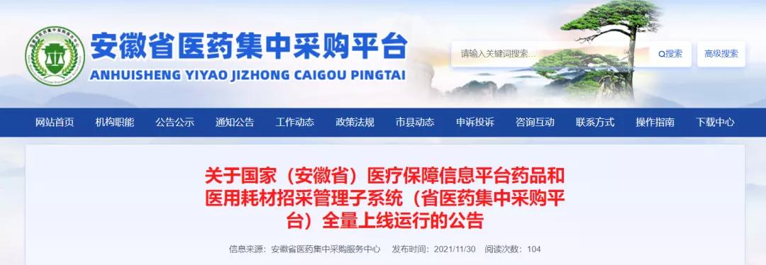 11月30日,安徽省醫(yī)藥集中采購平臺(tái)發(fā)布了一則重磅通知,關(guān)于《國家(安徽省)醫(yī)療保障信息平臺(tái)藥品和醫(yī)用耗材招采管理子系統(tǒng)(省醫(yī)藥集中采購平臺(tái))全量上線運(yùn)行》的公告。