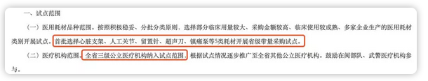 在試點(diǎn)范圍上:將首批選擇心臟支架、人工關(guān)節(jié)、留置針、超聲刀、鎮(zhèn)痛泵等5類耗材開展省級帶量采購試點(diǎn)。