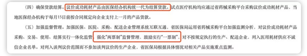 強(qiáng)化“兩票制”監(jiān)督管理,鼓勵實(shí)行“一票制”,對不按規(guī)定執(zhí)行的生產(chǎn)、配送企業(yè),列入醫(yī)用耗材供應(yīng)不誠信企業(yè)名單。
