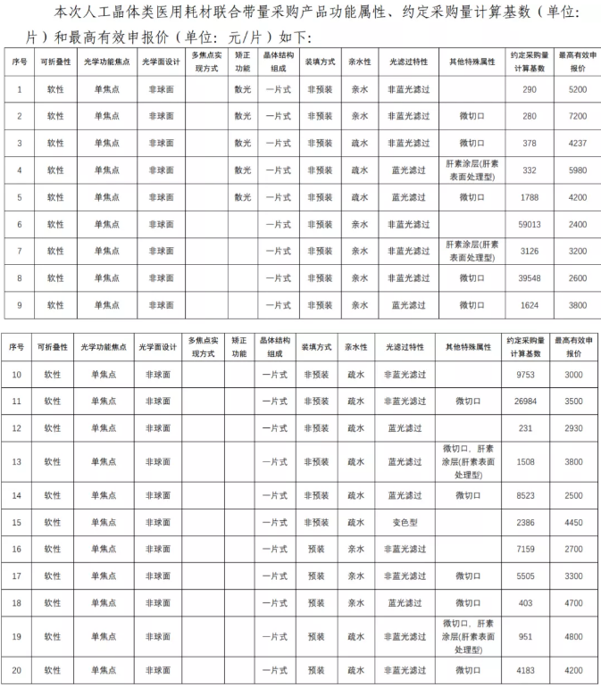 今日(4月30日),吉林省政府采購(gòu)中心消息發(fā)布《京津冀及黑吉遼蒙晉魯醫(yī)用耗材(人工晶體類)聯(lián)合帶量采購(gòu)文件(LH-HD2020-1)》(下稱《采購(gòu)文件》),公布人工晶體類耗材的具體采購(gòu)品種、申報(bào)價(jià)格等信息。