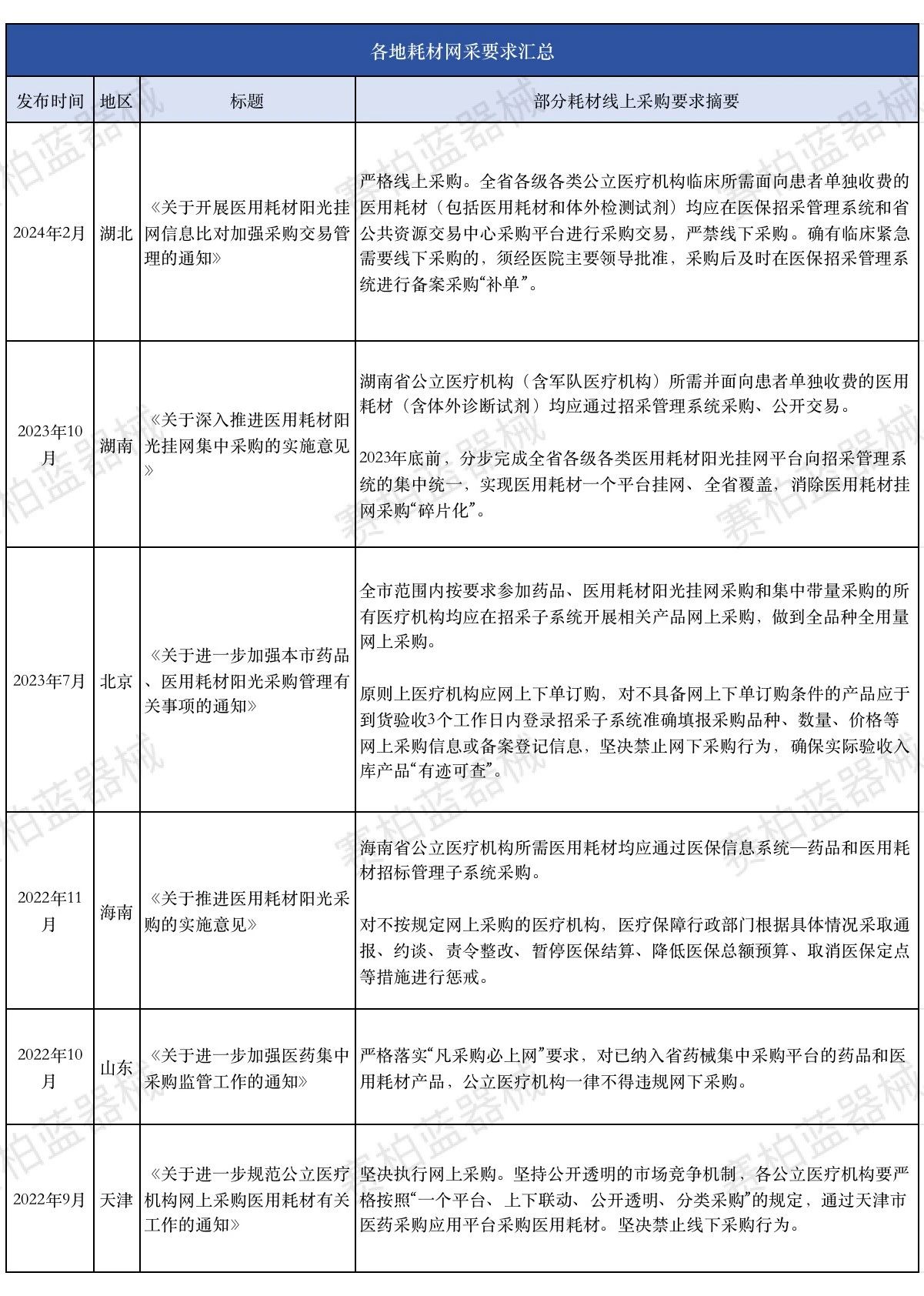 據(jù)賽柏藍器械不完全統(tǒng)計,截止目前已有超過20省發(fā)布有關(guān)優(yōu)化耗材掛網(wǎng)流程的相關(guān)通知,具體如下: