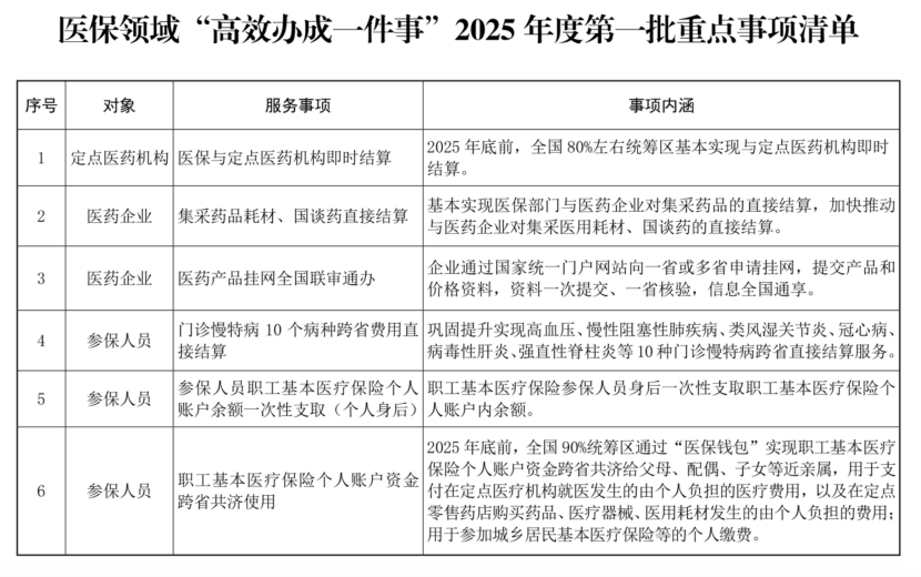 《清單》中明確,醫(yī)保與定點(diǎn)醫(yī)藥機(jī)構(gòu)即時(shí)結(jié)算,2025年底前,全國80%左右統(tǒng)籌區(qū)基本實(shí)現(xiàn)與定點(diǎn)醫(yī)藥機(jī)構(gòu)即時(shí)結(jié)算。